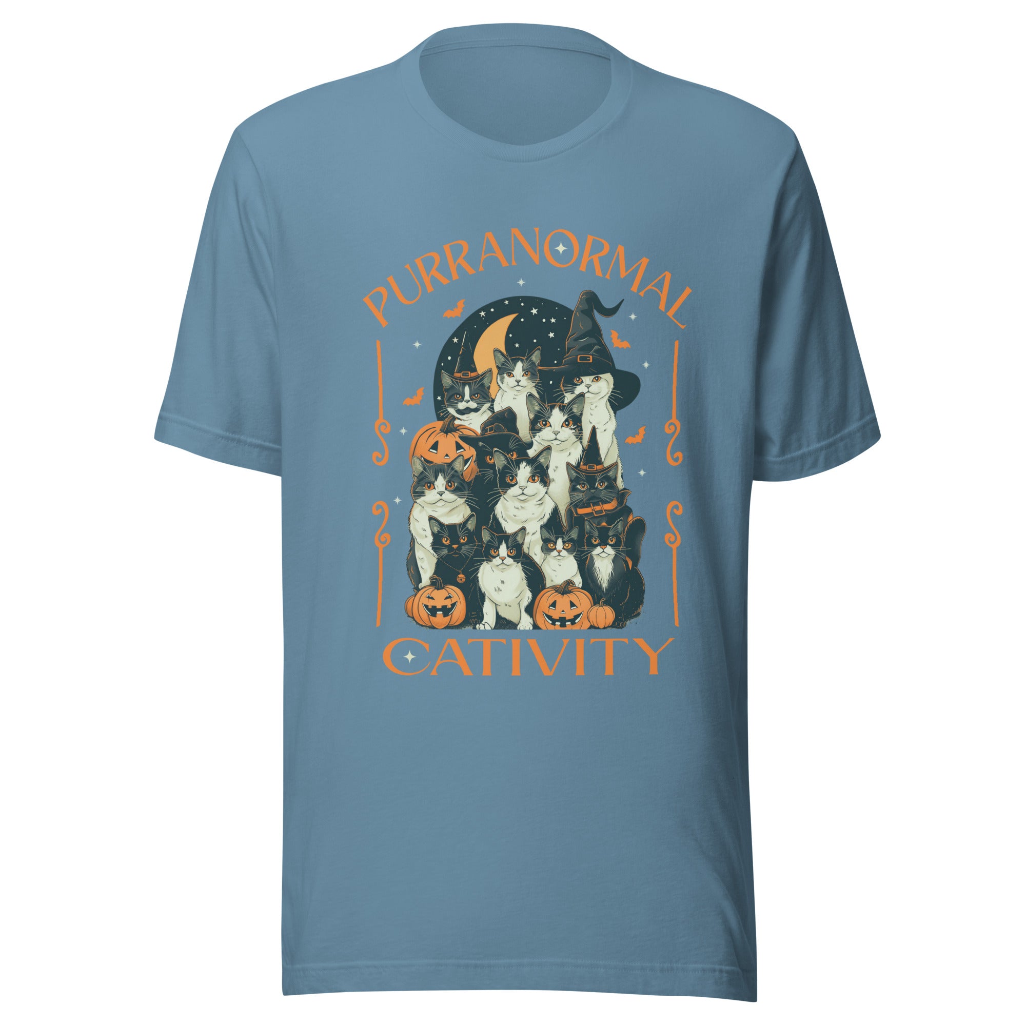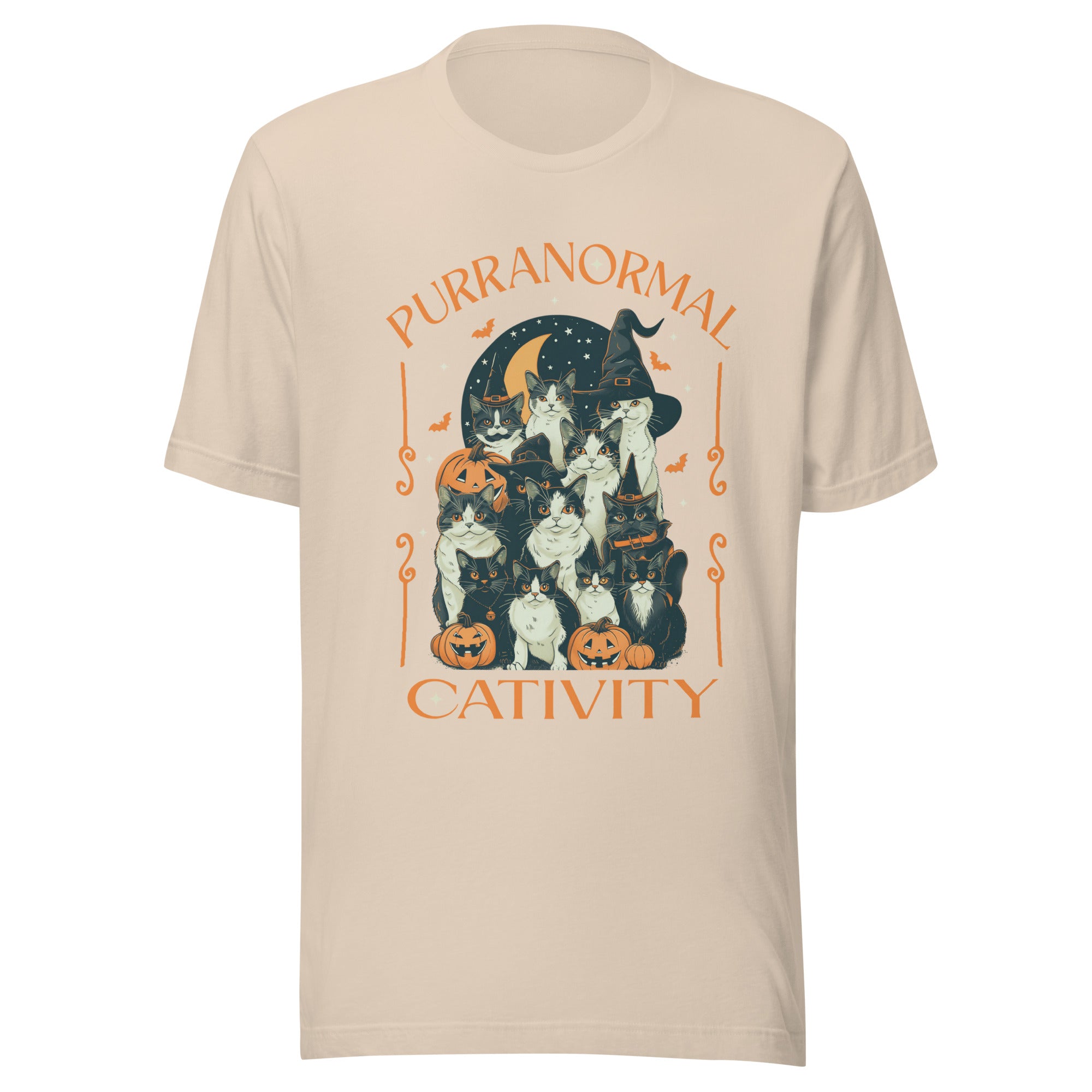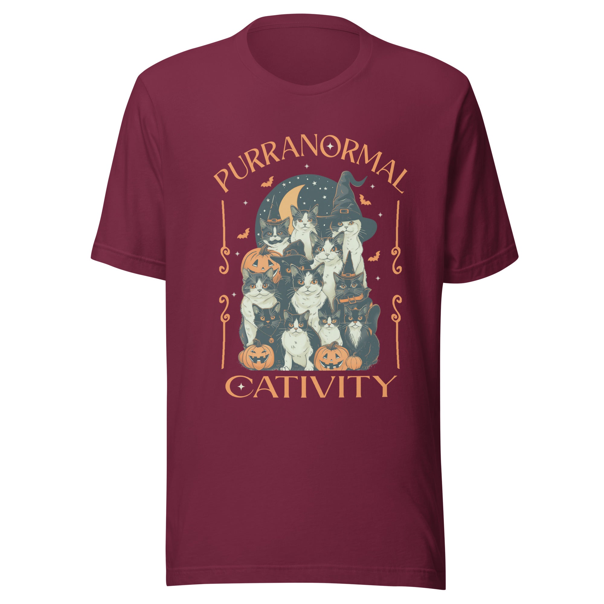 Purranormal Cativity Shirt – Funny Halloween Cat Lover T-Shirt, Spooky Kitties & Pumpkins Graphic Tee